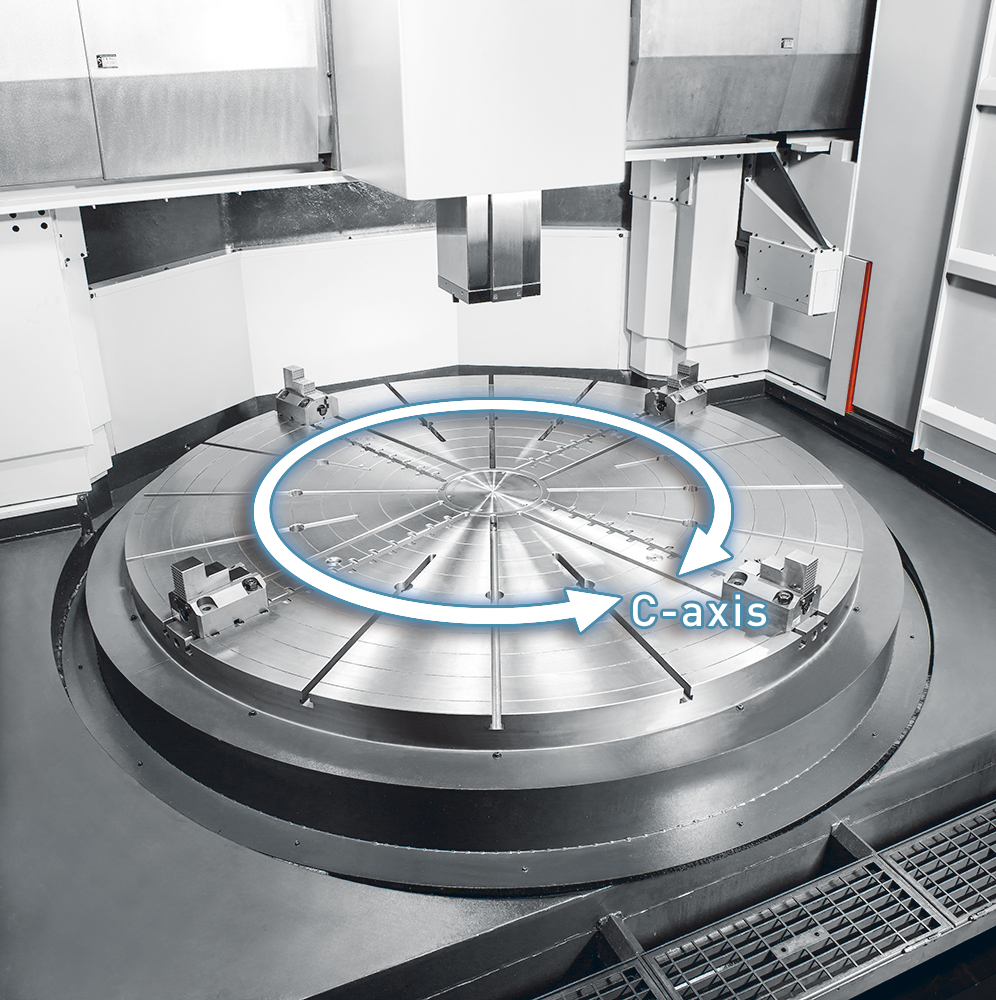 The Cf-axis and disk brake system provides the most rigid and powerful type of C-axis in the market today. The surface accuracy and dynamic accuracy can be maintained under heavy duty cutting conditions. -