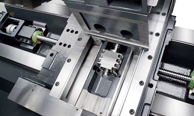 - The X/Z axes utilize large hardened box ways with a wide span design.