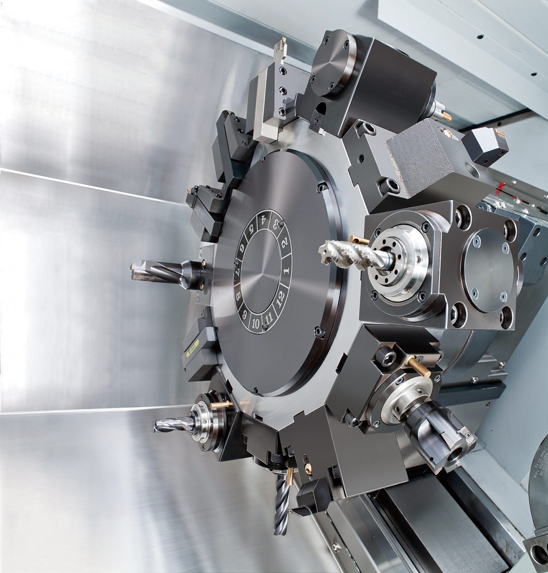 - The 12-station live tooling turret offers 12 stations available for live tooling, live tools rotate in working position only to reduce power loss and heat.
