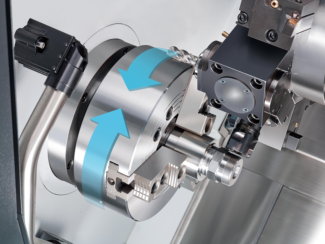 - Y-axis control further enhances multi-tasking live tooling capabilities and improves various machining precision. High precision grooving and X-axis off-center drilling are enabled.
