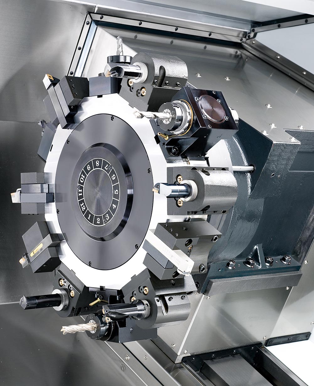 - The 12-station live tooling turret offers 12 stations available for live tooling, live tools rotate in working position only to reduce power loss and heat.
