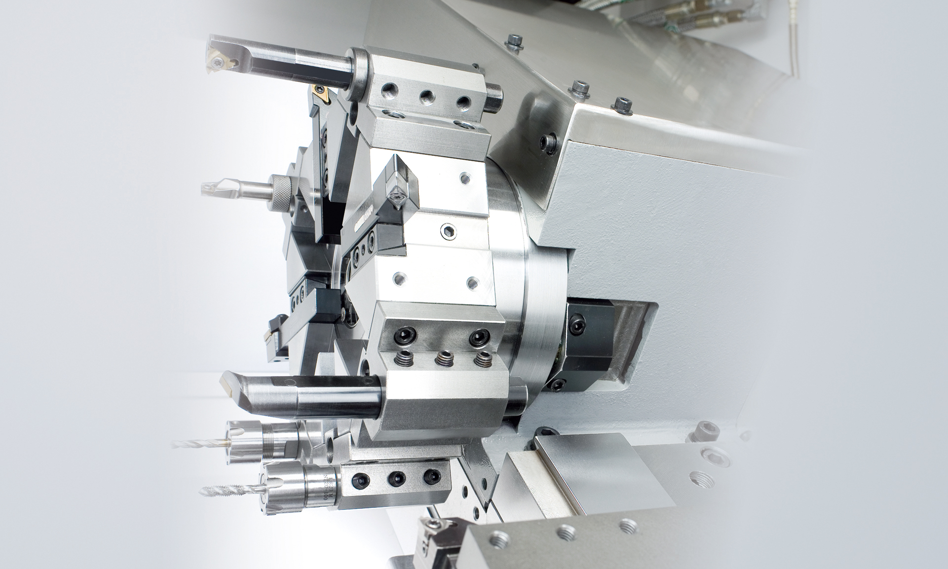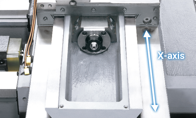 - GOODWAY's live tooling turret utilizes the latest servo indexing technology to achieve 0.2 second indexing times for adjacent stations and 0.5 second for stations at the opposite end of the disk. ( When the optional live tooling turret is selected, the maximum machining length is 170 mm. )