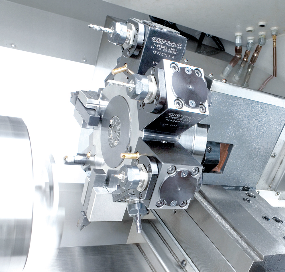 - Live tooling and C-axis control capabilities on the TS-150 series allow the machine to perform multiple tasks on a work-piece, such as turning, milling, drilling and tapping. This eliminates manpower and cycle time, while reducing accuracy lost, which will occur if the part is moved from one machine to another.