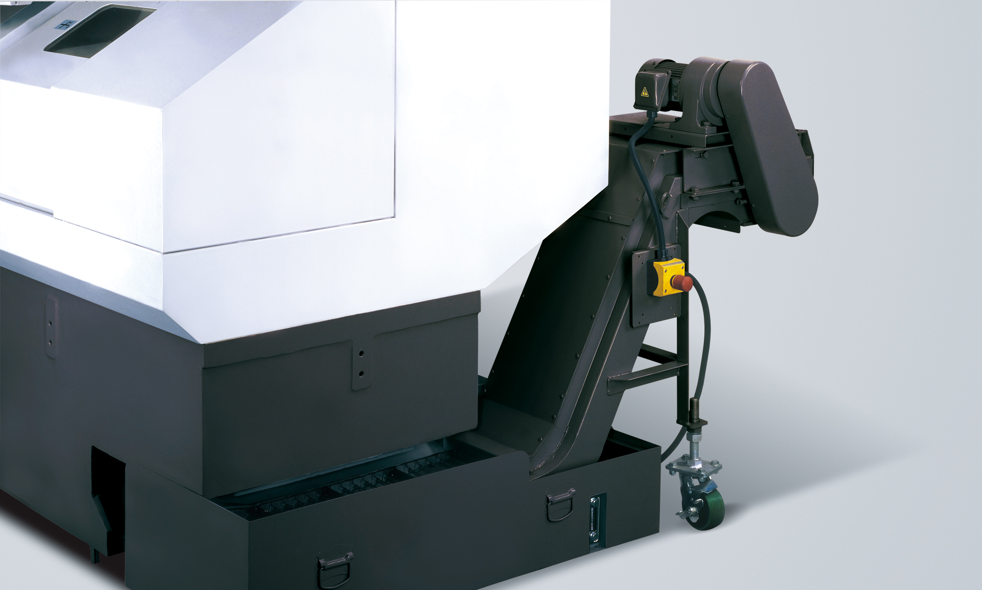 - Rear-exit chip conveyor design allows for a more compact machine layout on the production line.