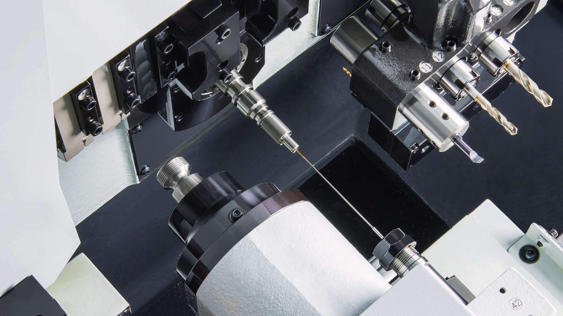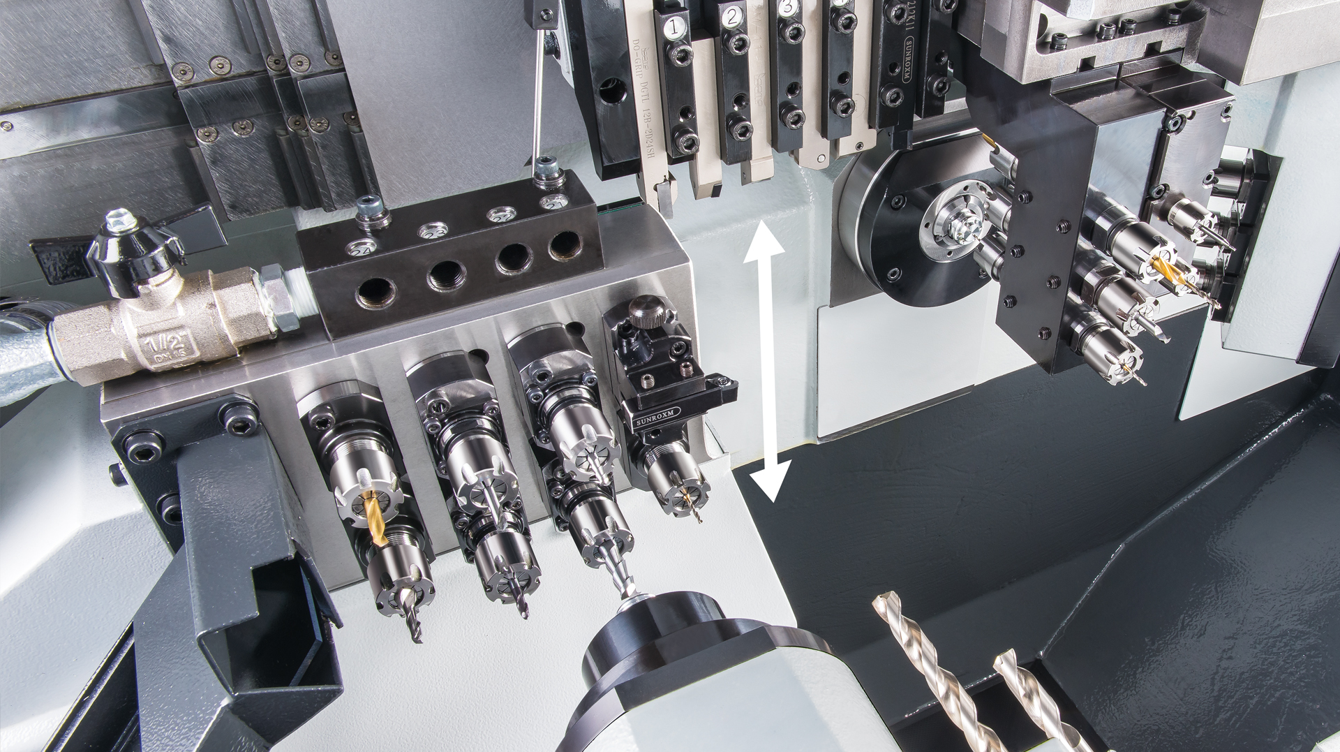 - The sub-spindle body can be equipped with two deep hole drills for deep drilling and tapping operations.