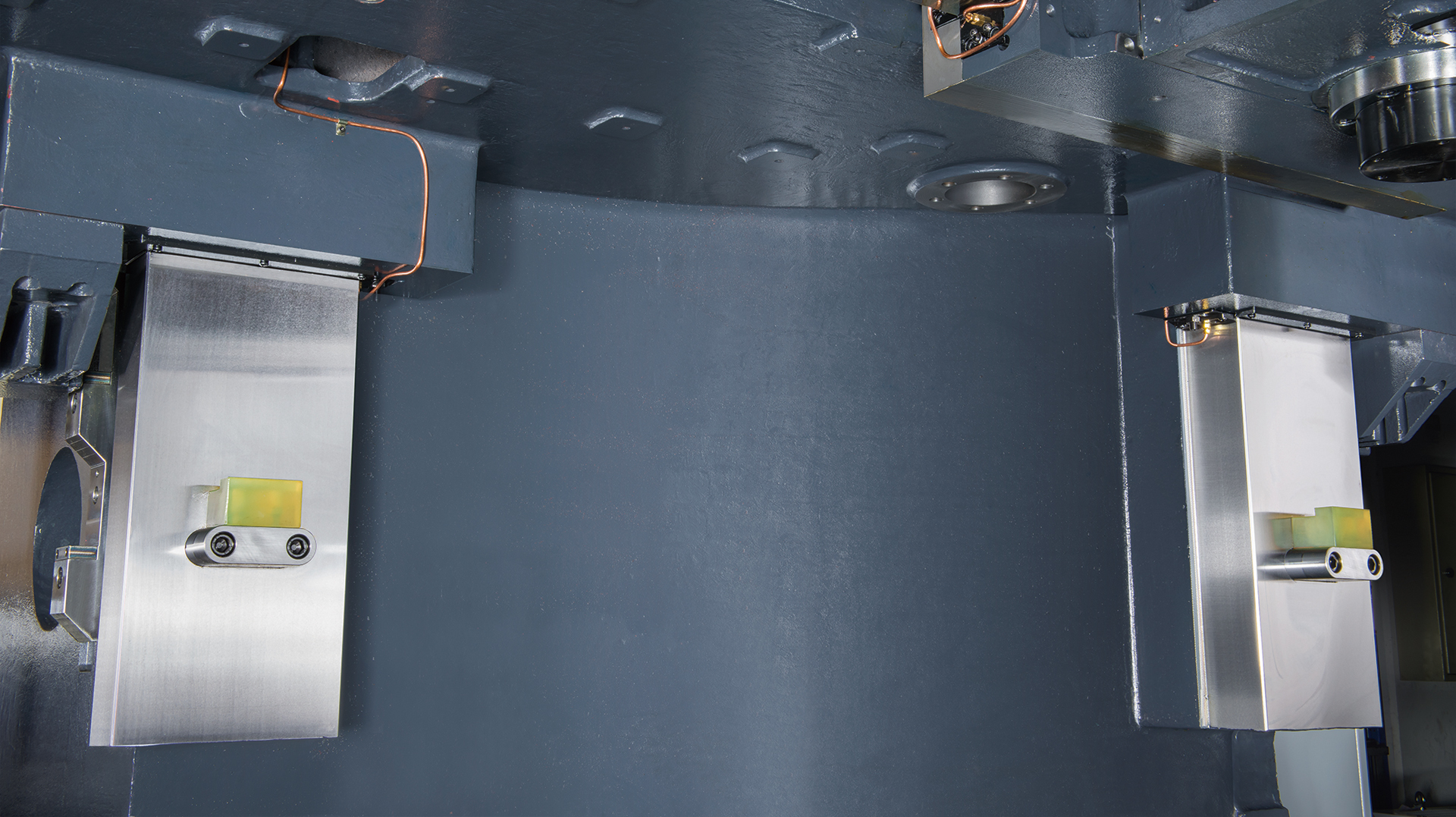 - A 45 kW spindle motor drives a two-speed gearbox, delivering spindle torque output of up to 23,900 Nm.
