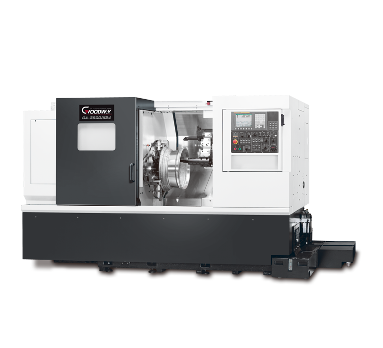 Packed with industry leading technology and top quality components, GOODWAY GA-3600/W24 combines strong constructions, customizable integrated interface for chucks, and efficient chip disposal capabilities to bring you the top choice of aluminum wheel turning center in the market. With the advantages of the load / unload feature, GA-3600/W24 series can rapidly replace cam arms and ring locators to complete 1st and 2nd operations all at once. You can combine 2 sets GA-3600/W24 machines with a machining center and robot arm to form a high performance production line that is sure to meet your turning applications for aluminum wheels of today and tomorrow.