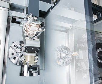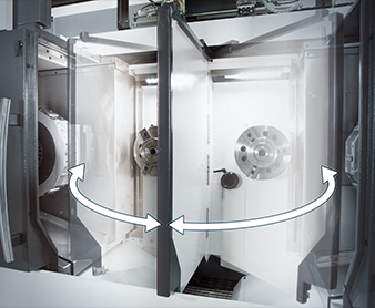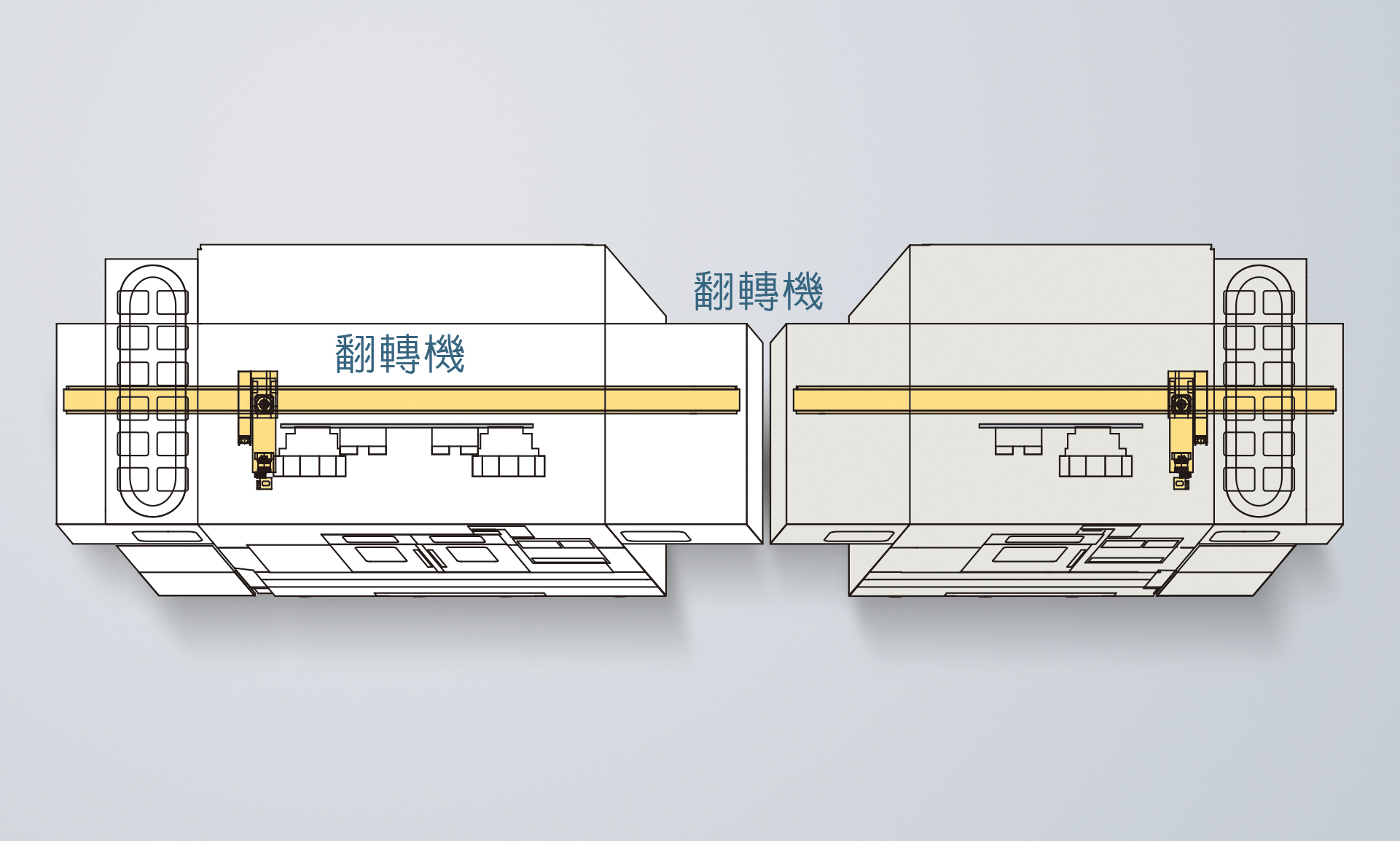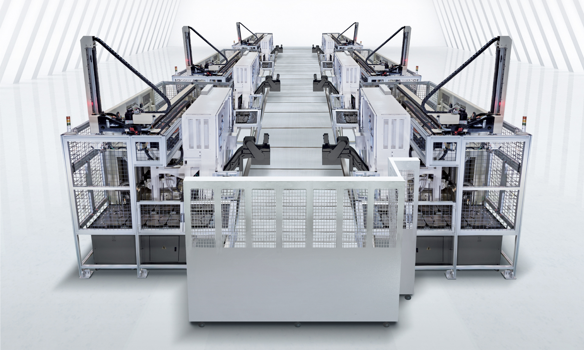 - 單主軸機型、雙主軸機型、工件翻轉機構及門型機械手臂可彈性配置成一高效率生產線,實現最佳化的加工工序