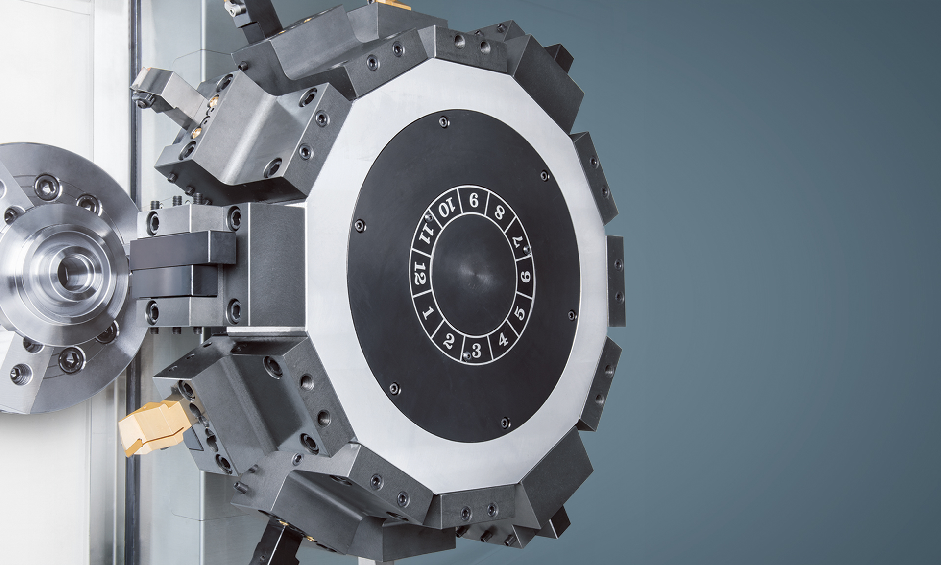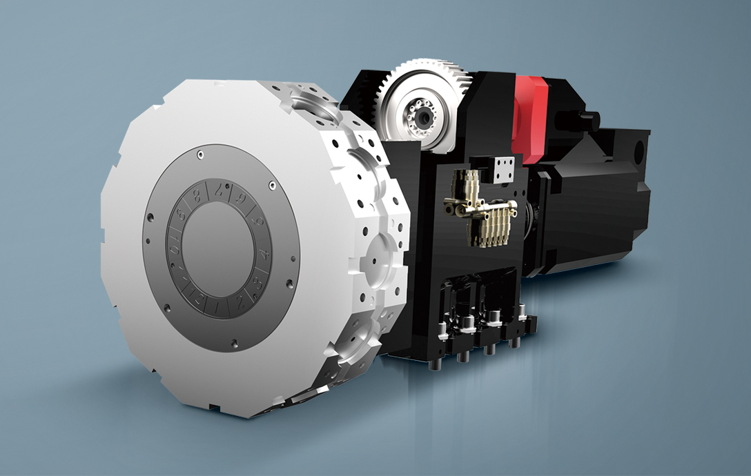 - 12 支刀動力刀塔可裝設 12 支動力刀具,且僅在工作位置之刀具旋轉,其餘不旋轉。 ( 選用 16 支刀動力刀塔 )