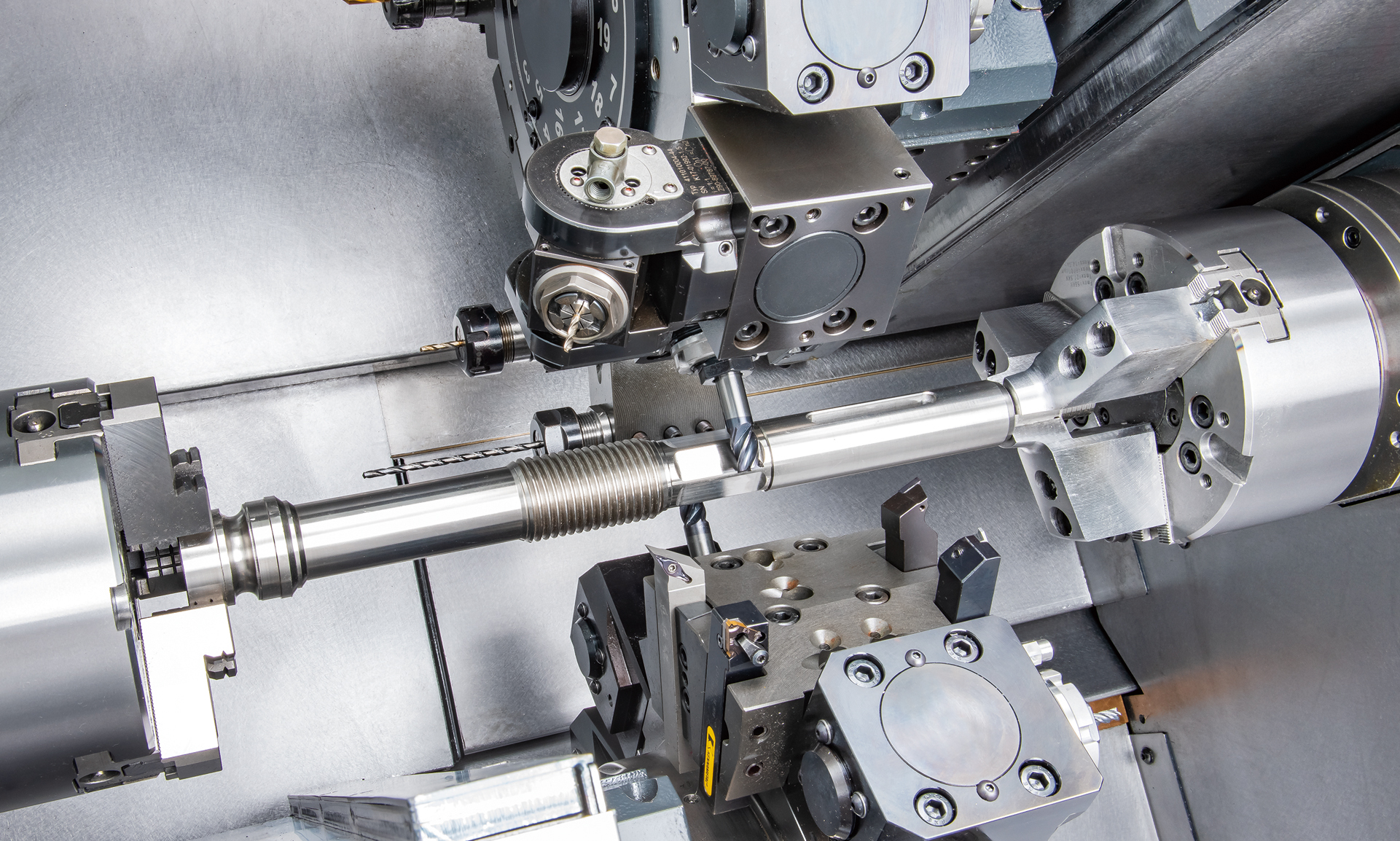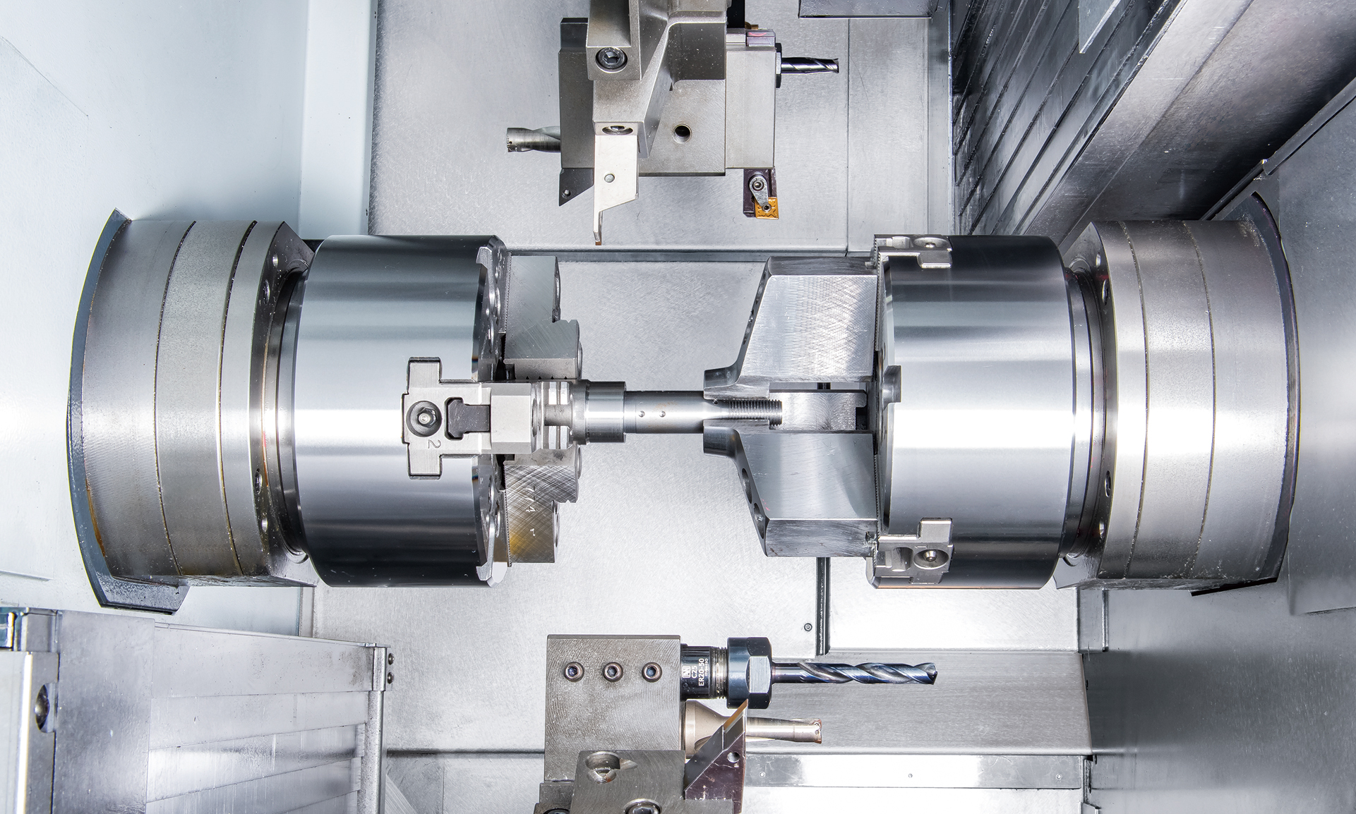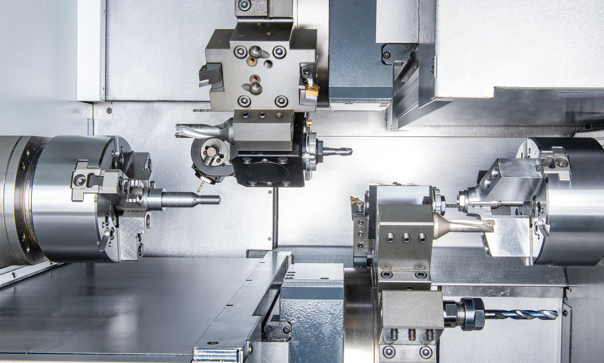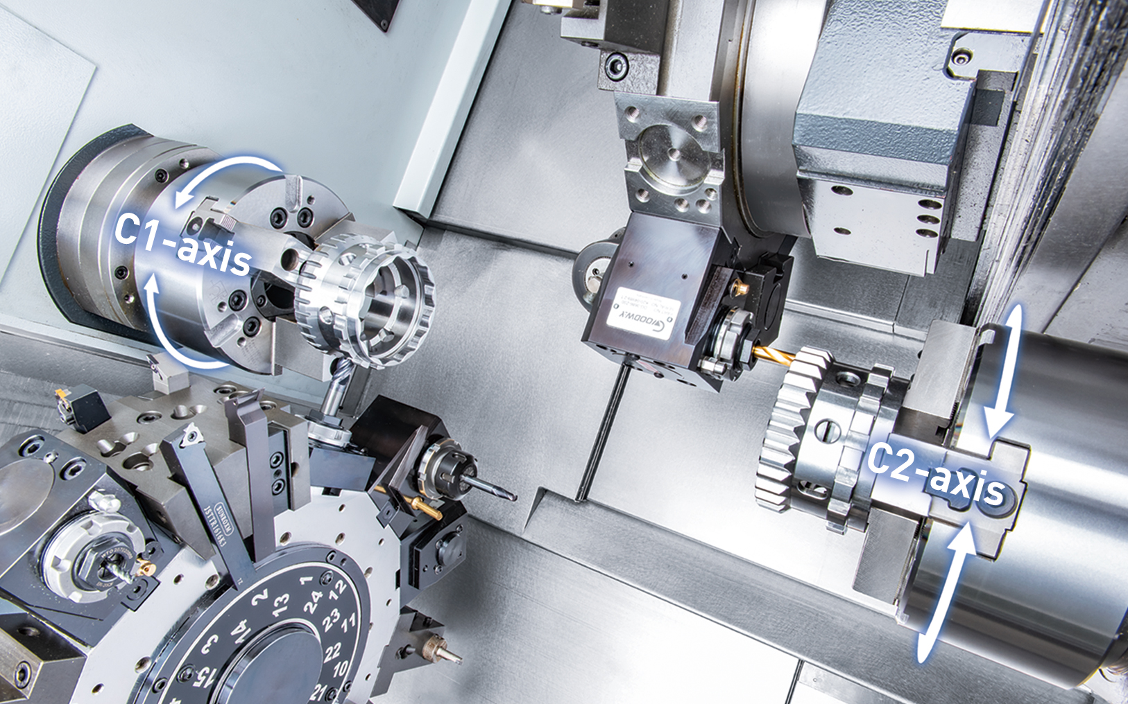 - 雙主軸,上、下刀塔設計,刀塔皆可選配 Y 軸控制功能