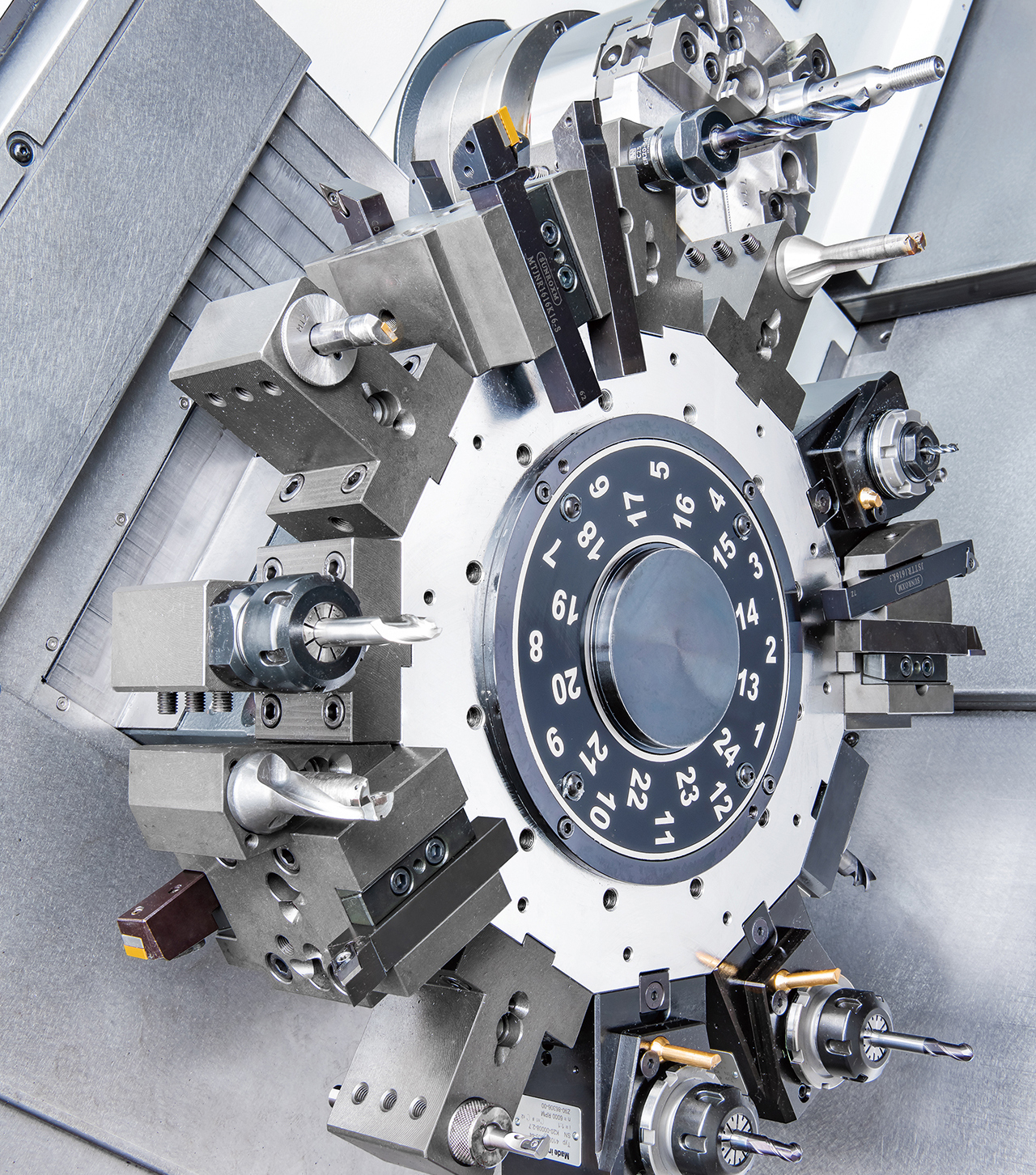 - 可選配 12 或 24 支刀動力刀塔 ( 皆裝設 12 支動力刀具 ),動力刀具轉速最高可達 6,000 / 8,000 rpm