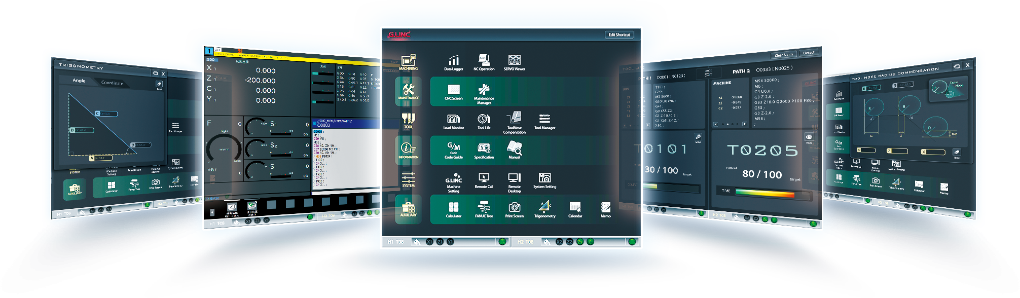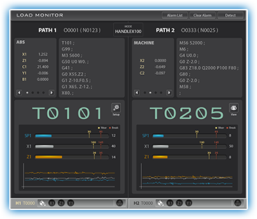 可以同時觀察各個主軸與伺服軸的座標、轉速、扭力等各項資訊