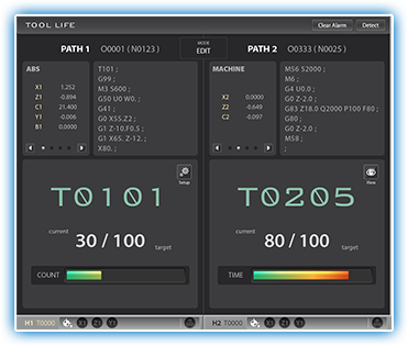 能設定每把刀可加工數量或時間,若到達自訂值則跳出警告提示